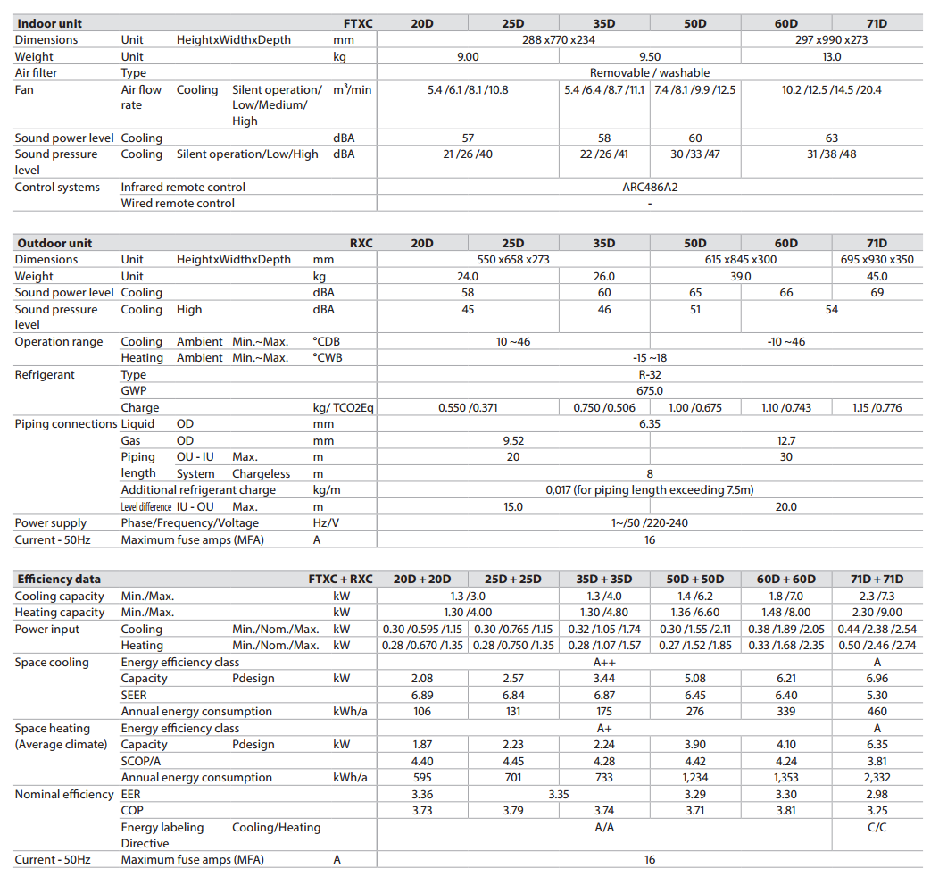 A Daikin FTXC25D / RXC25D általános szerelési információi: