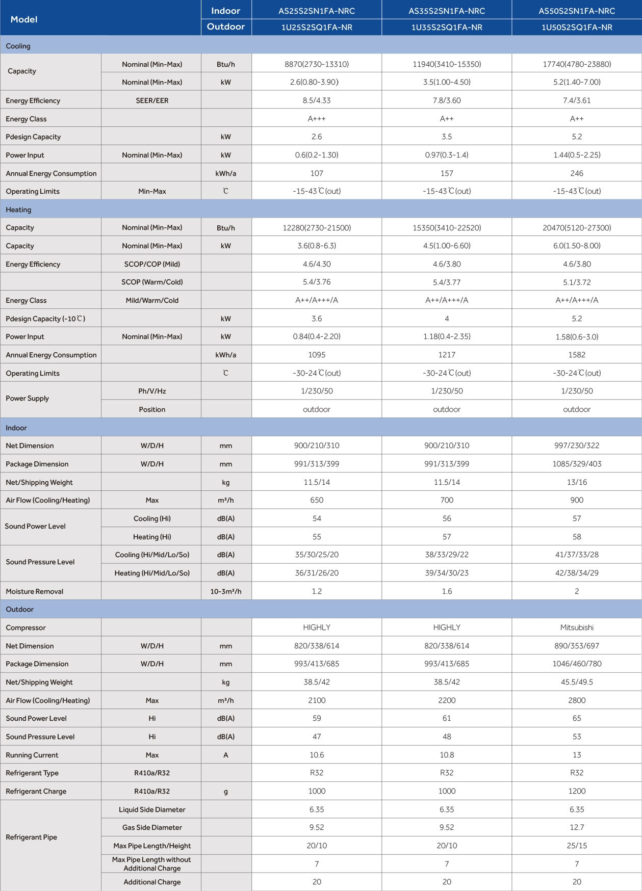 A Haier AS35S2SN1FA-NRC általános szerelési információi: