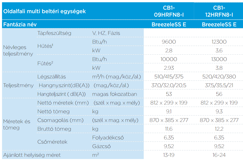 A Midea CB1-09HRFN8-I Breezeless-E oldalfali multi beltéri egység fontos tulajdonságai: