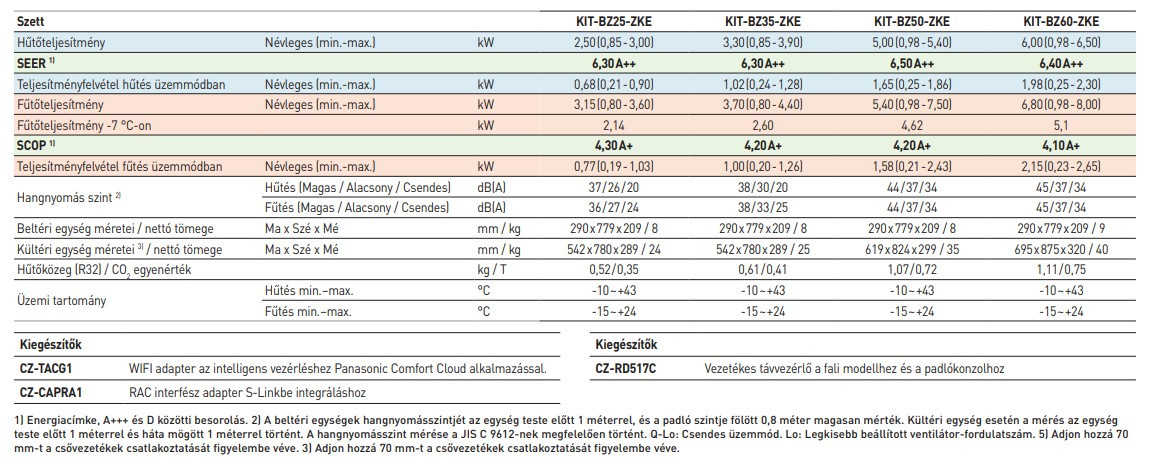 A Panasonic KIT-BZ25-ZKE Standard Inverteres Split klíma fontos tulajdonságai: