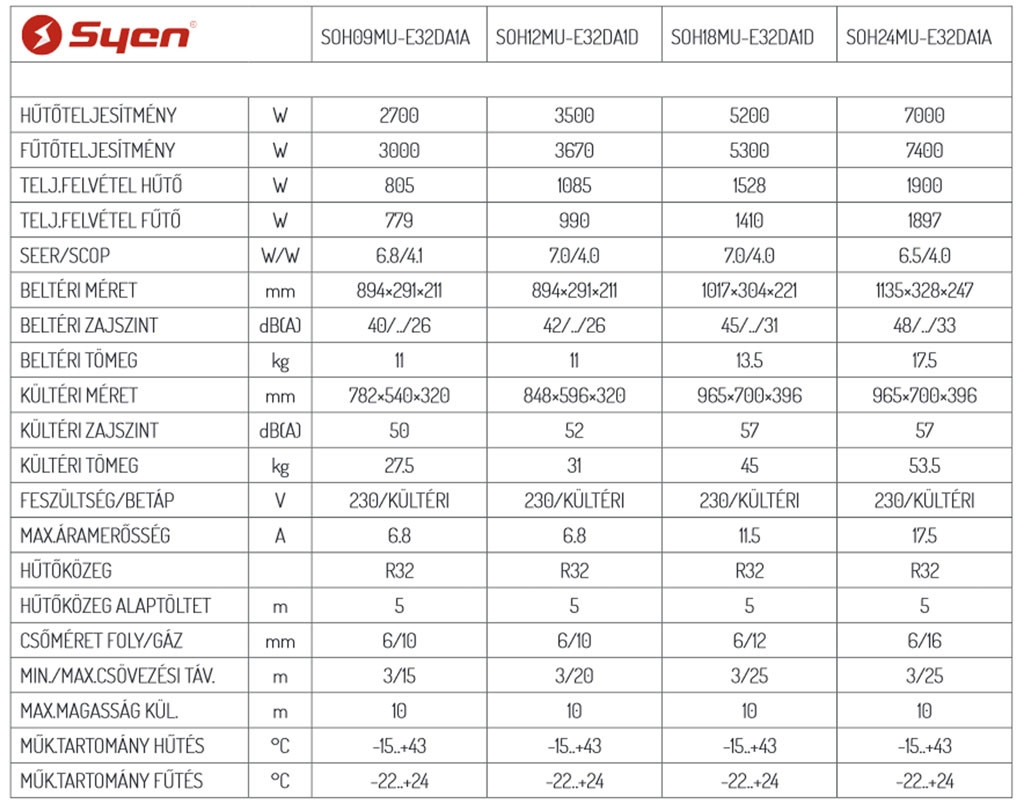A Syen Muse SOH09MU-E32DA1A Inverteres Split klíma fontos tulajdonságai: